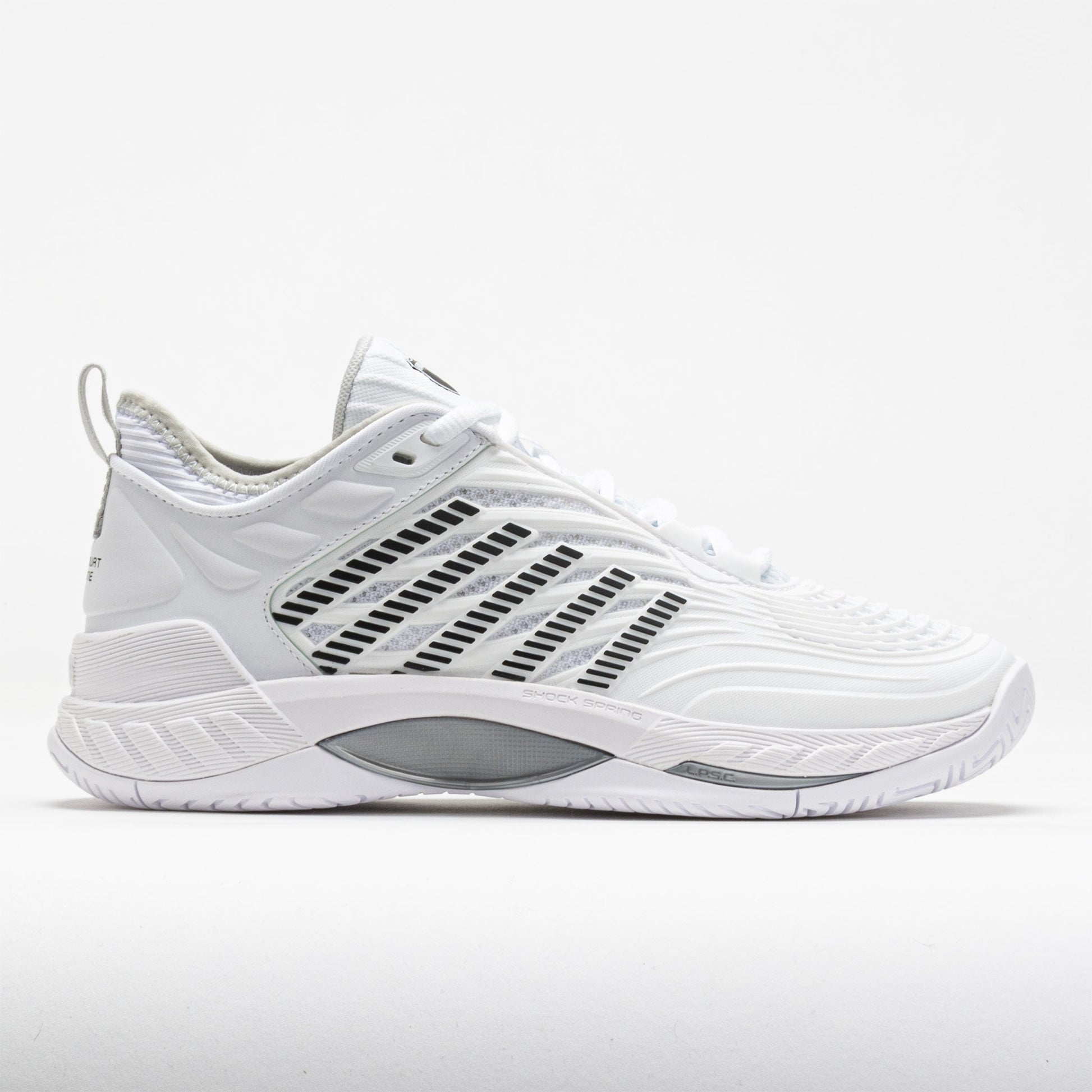 Reach the pinnacle in the K-Swiss Hypercourt Supreme 2! Updated with a more secure fit, improved support and extra durability, this tennis shoe provides maximum comfort during the match. Slide into a Durawrap X upper and stay protected while sprinting around the court. The dual-density midsole features a lightweight Surgelite top layer for comfort and a Shock Spring top layer for quick reactions. Enjoy traction and durability on any surface under the DragGuard 7.0 rubber outsole. Light, responsive and comfortable, the K-Swiss Hypercourt Supreme 2 brings you to the ball faster!